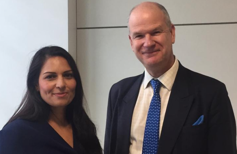 Mark Shelford (right) appears pretty happy next to former home secretary, Priti Patel (left) – photo: Mark Shelford
