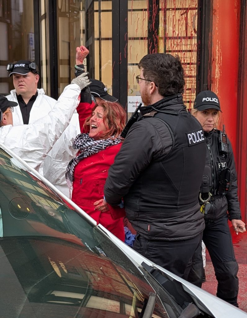Members of Palestine Action have targeted the offices of Allianz in Bristol city centre.