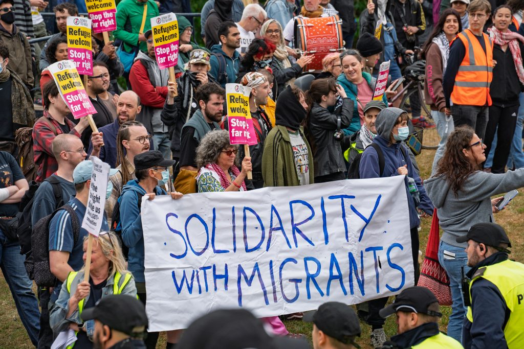 Counter-protesters outnumbered those gathered for the Great British National Strike – photo: Rob Browne