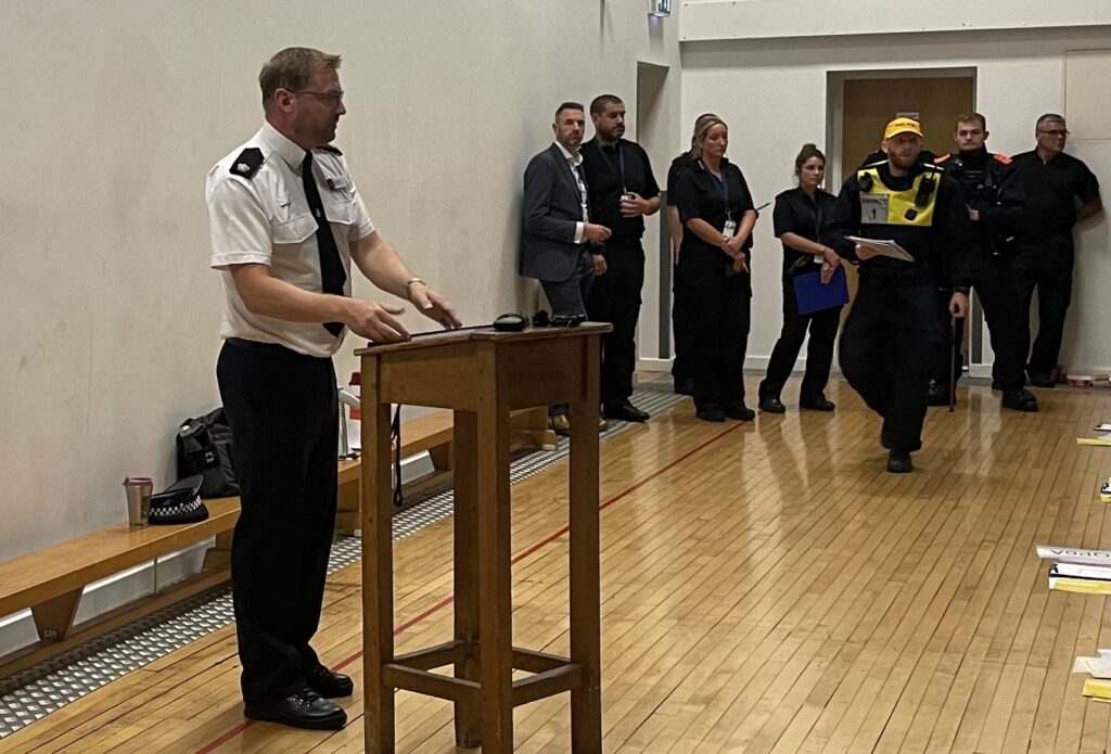 Superintendent Dan Forster addresses officers ahead of Wednesday’s far-right rally – photo: Martin Booth