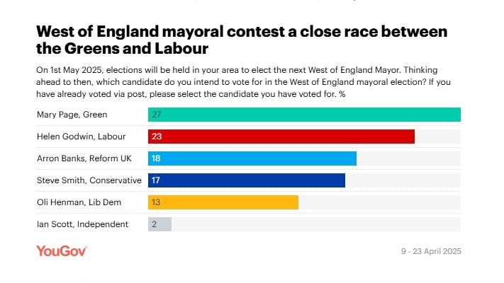 The Green Party’s Mary Page will be the next mayor of the West of England according to the first poll carried out in the run-up to the election on May 1.