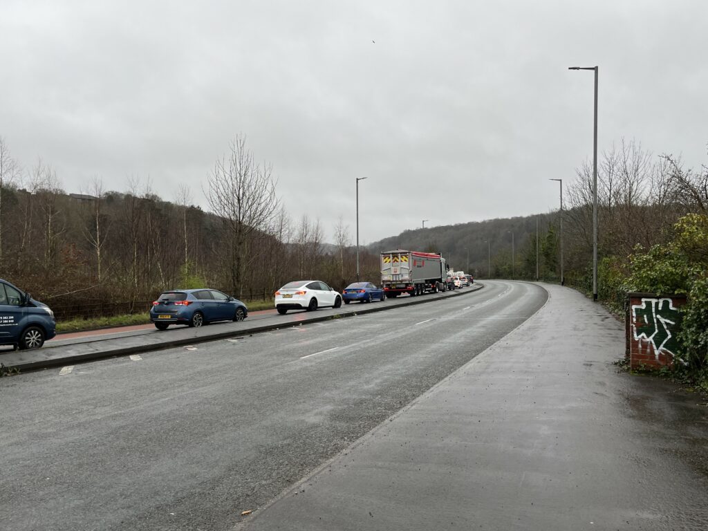 Traffic backed up as far as Sea Mills on the Portway after the road was closed in both directions on Wednesday due to flooding.
