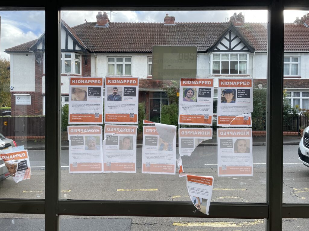 Posters of people kidnapped from Israel appear in Bristol