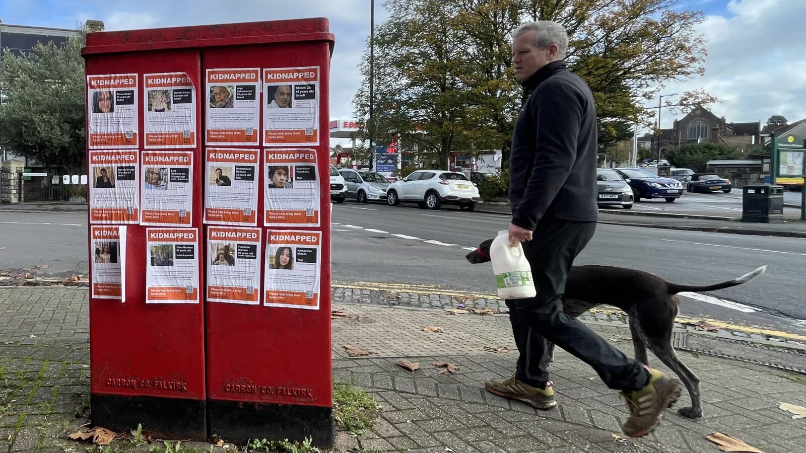 ‘Kidnapped from a music festival by Hamas’, ‘Kidnapped from her home’ by Hamas, ‘Kidnapped from his home by Hamas’ say the posters in Henleaze.