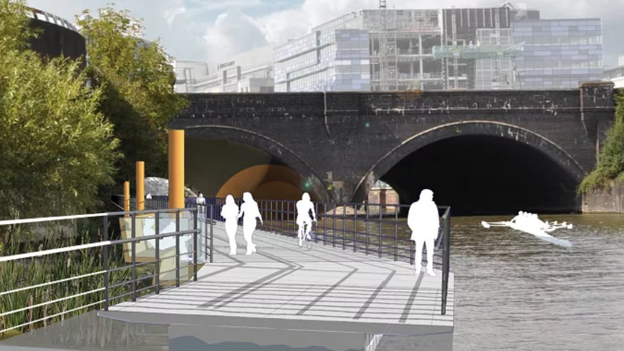 A harbour walkway could provide pedestrian and cycle access to Temple Quarter alongside the Floating Harbour