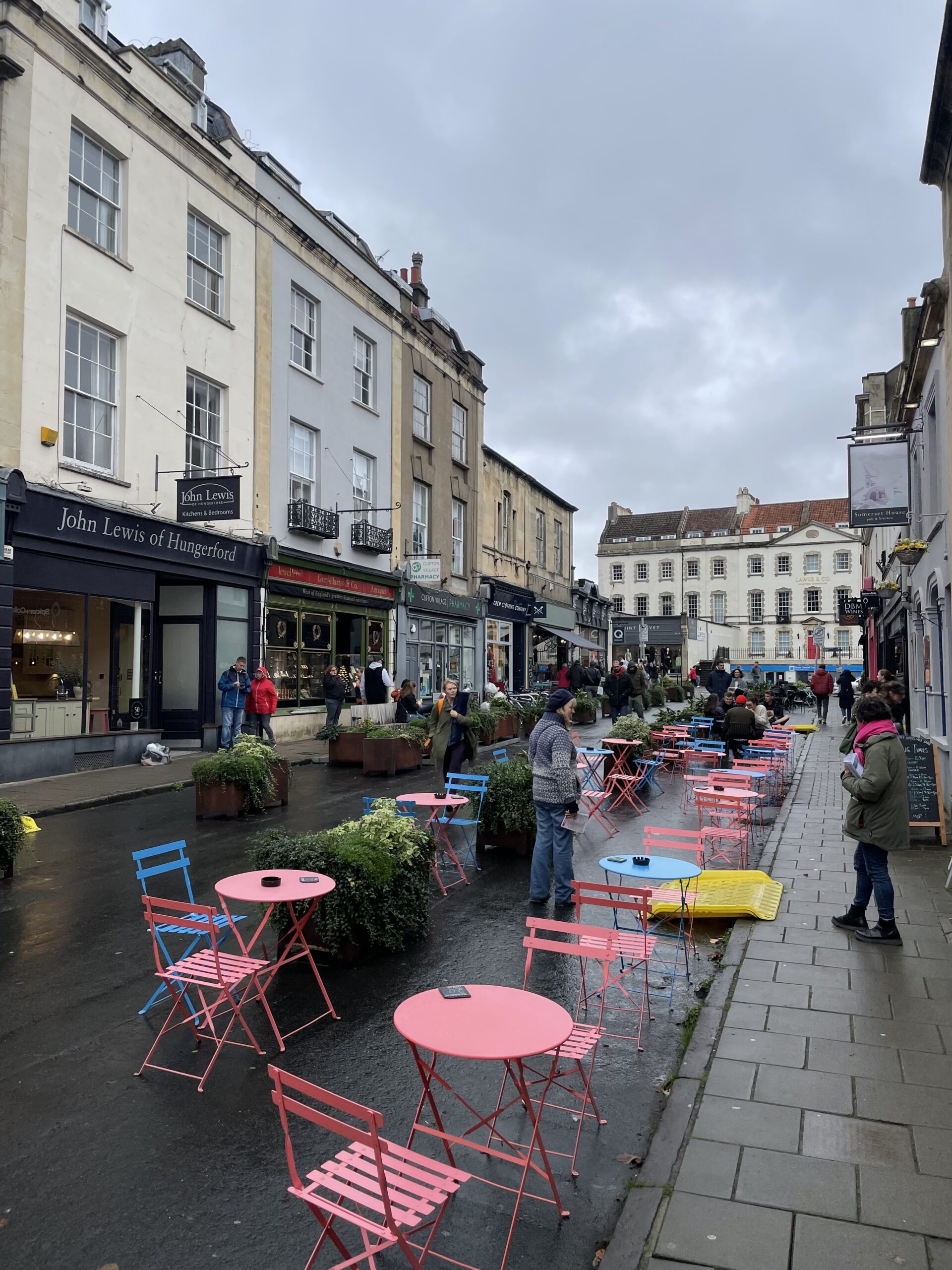 Tables and chairs on the road for outdoor eating and drinking are now a familiar sight on the street, with data showing that more people have been walking and cycling to visit, and that that fewer cars are travelling through Clifton Village as a whole.