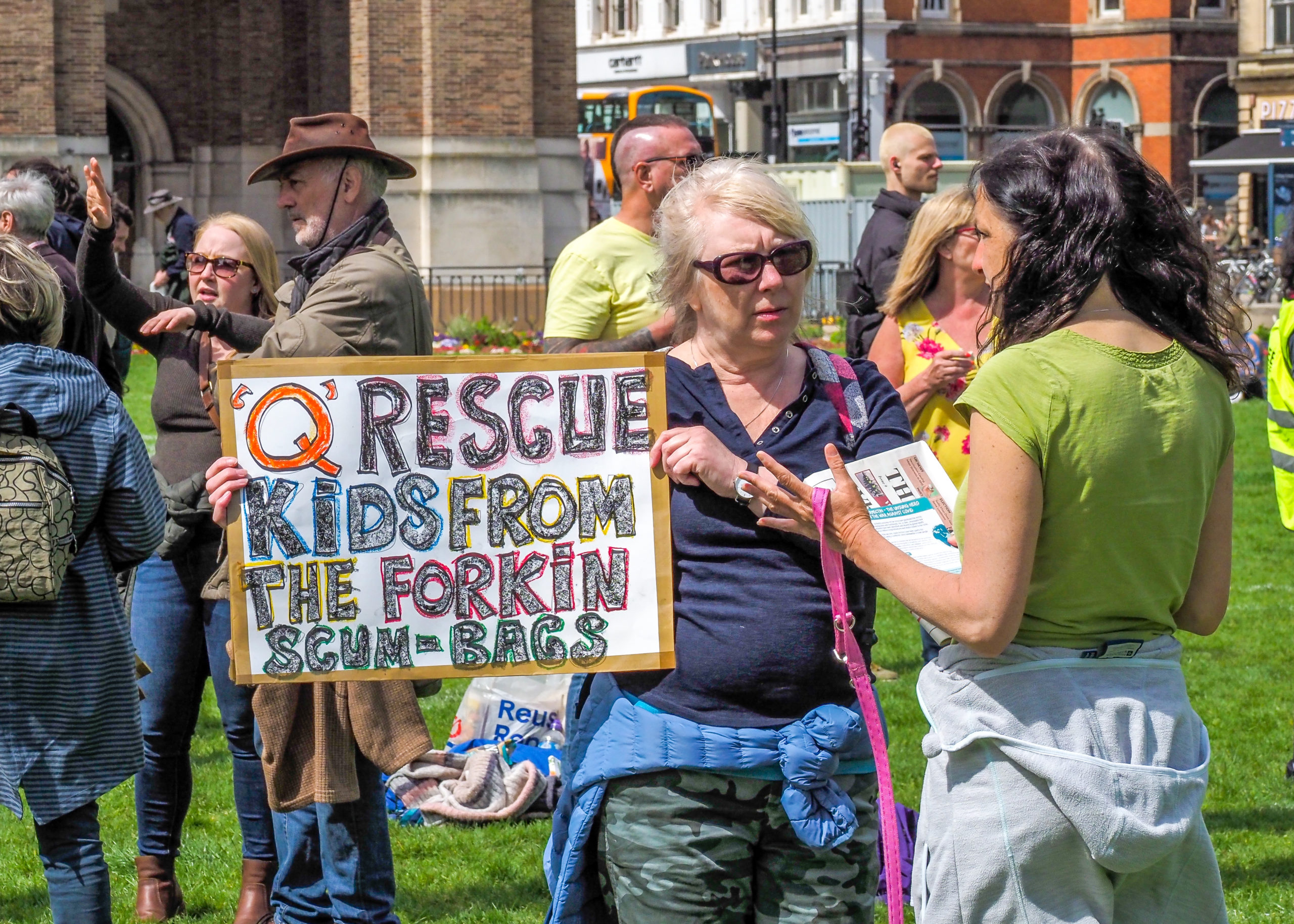 QAnon believers were among the anti-vaxxer crowd – photo: Rob Browne