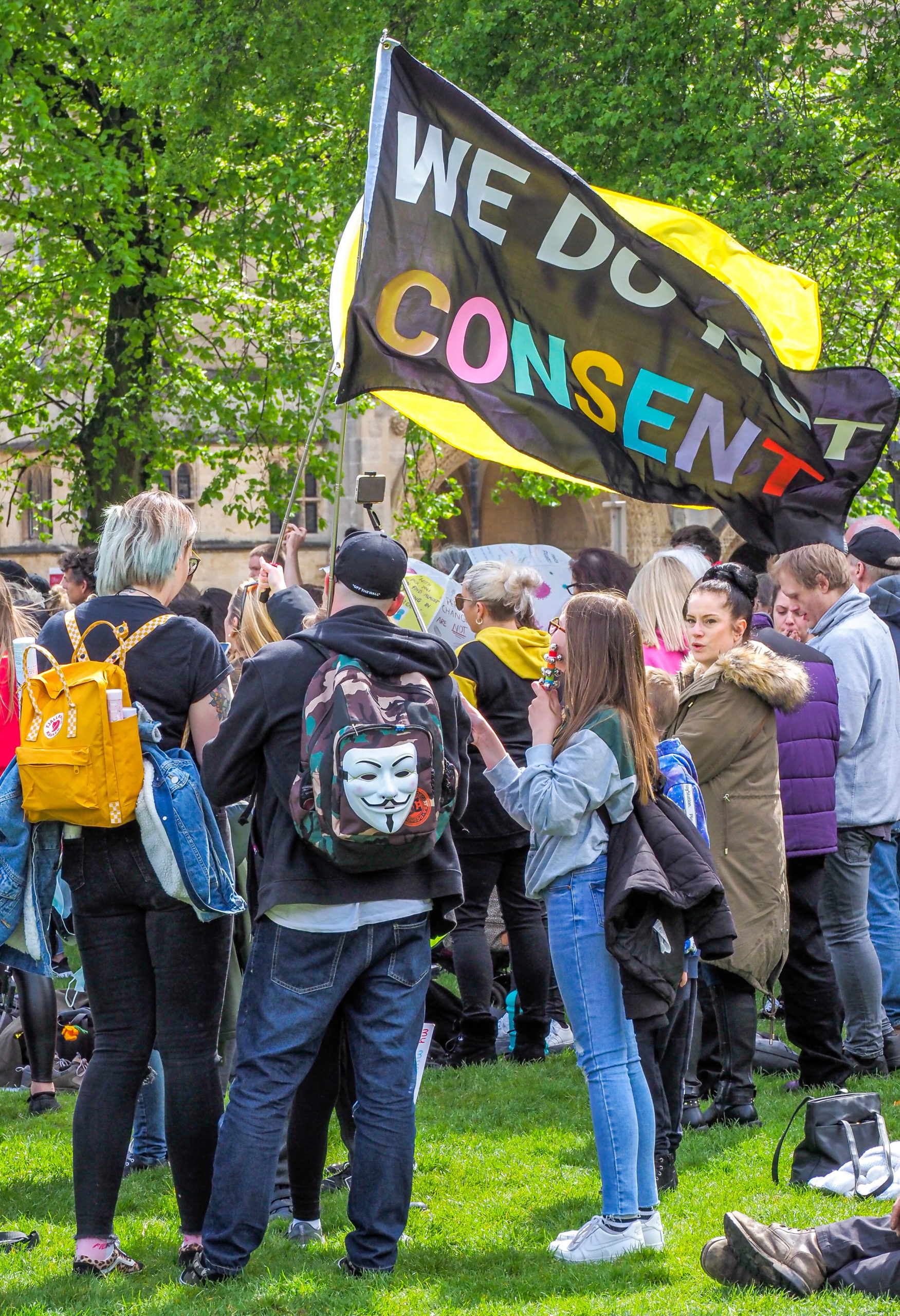 ‘We do not consent’ was among the banners at the ant-lockdown gathering – photo: Rob Browne