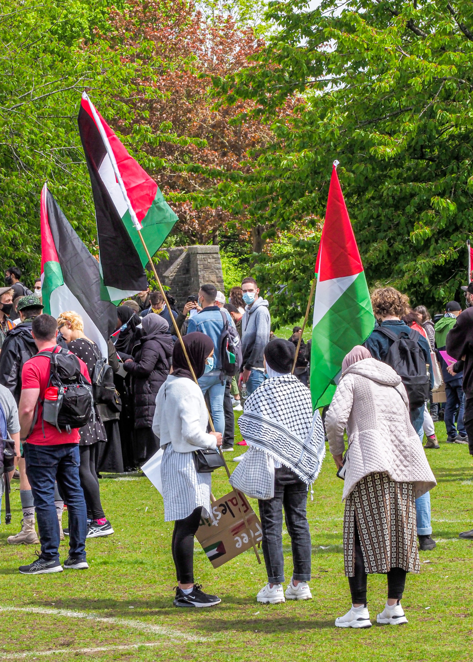 People gather in Castle Park before the pro-Palestine march – photo: Rob Browne