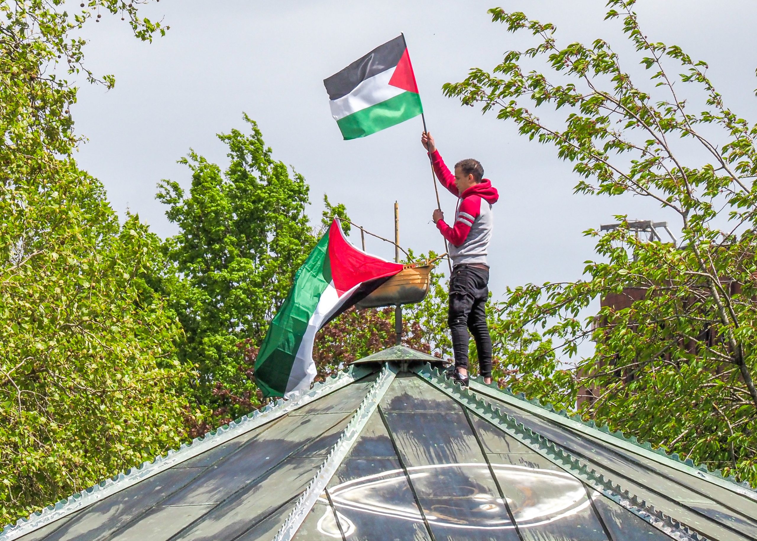 Palestinian flags were attached to the top of the bandstand – photo: Rob Browne