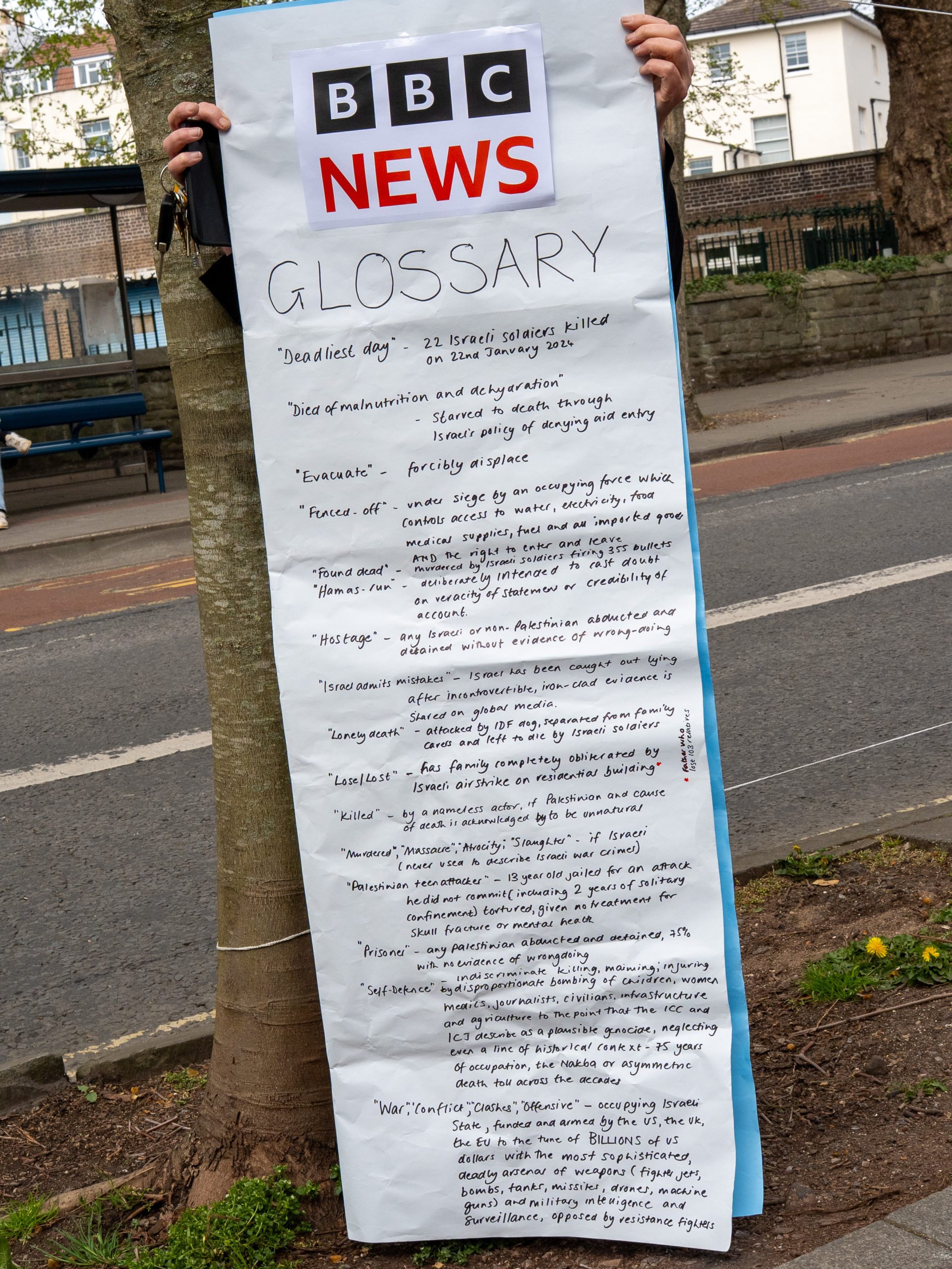 The BBC picket was one of three pro-Palestine protests that took place on Saturday. The others were a ‘Big Ride for Palestine’ by cyclists and a march in Castle Park
