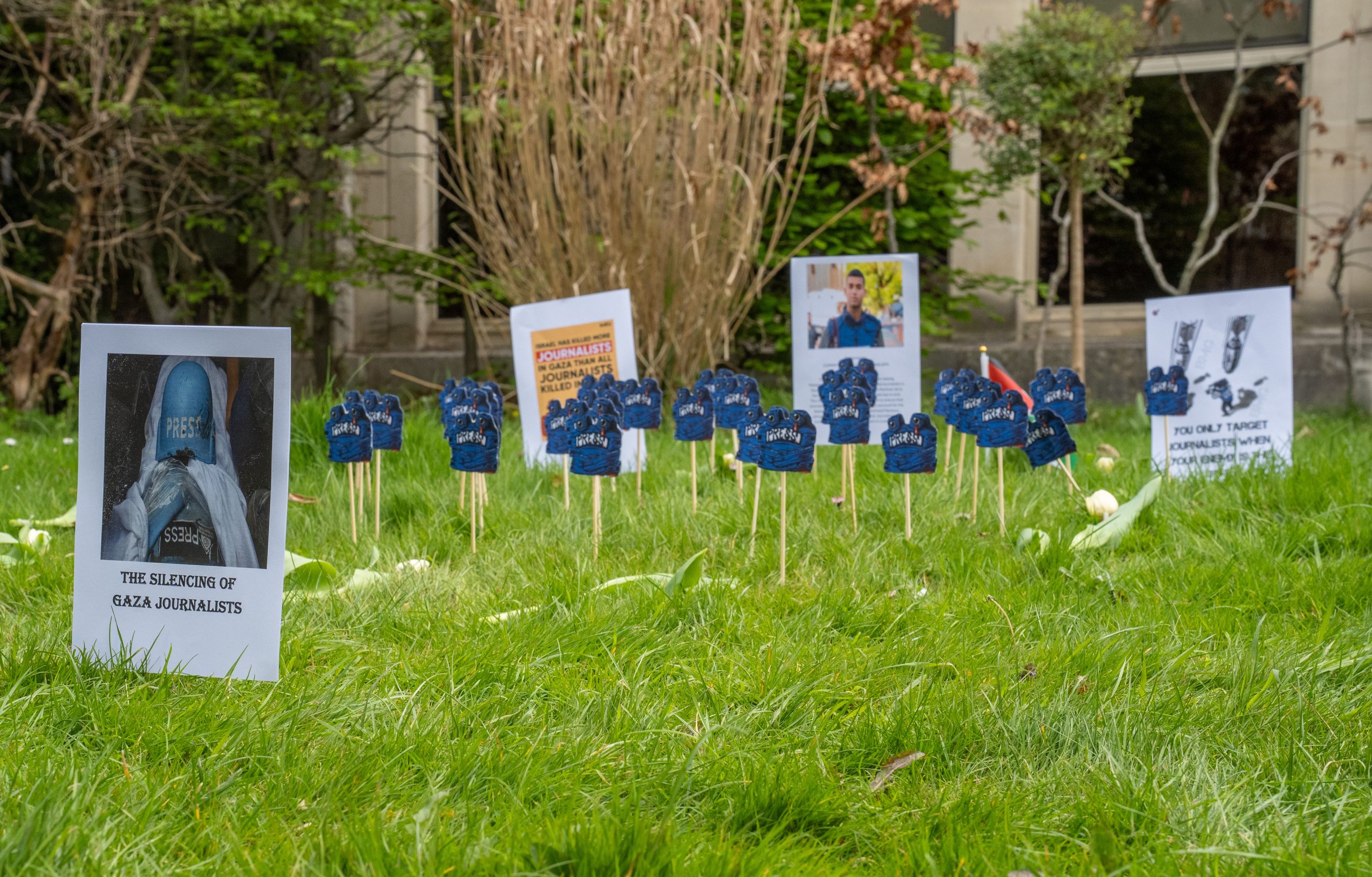 Six days earlier, members of the Bristol Stop the War Coalition erected a ‘press cemetery’ to commemorate Palestinian journalists killed since October 7