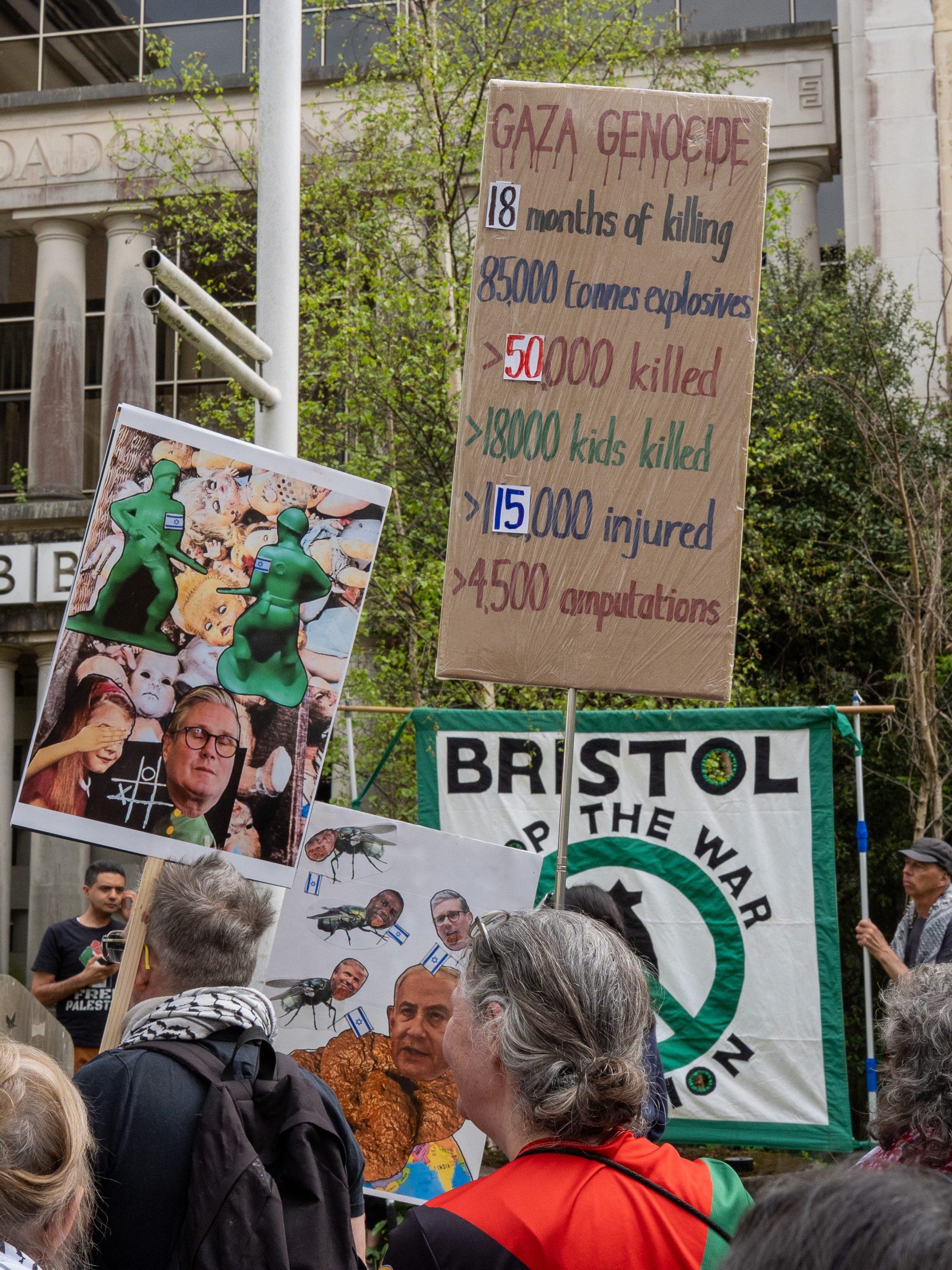 Alongside the Stop the War Coalition, members of the Bristol Trades Union Council and Na’amod, a movement of British Jews campaigning against Israeli occupation in Palestine, were in attendance as were cyclists riding as part of the national ‘Big Ride For Palestine’ movement raising money for the Middle East Children’s Alliance.