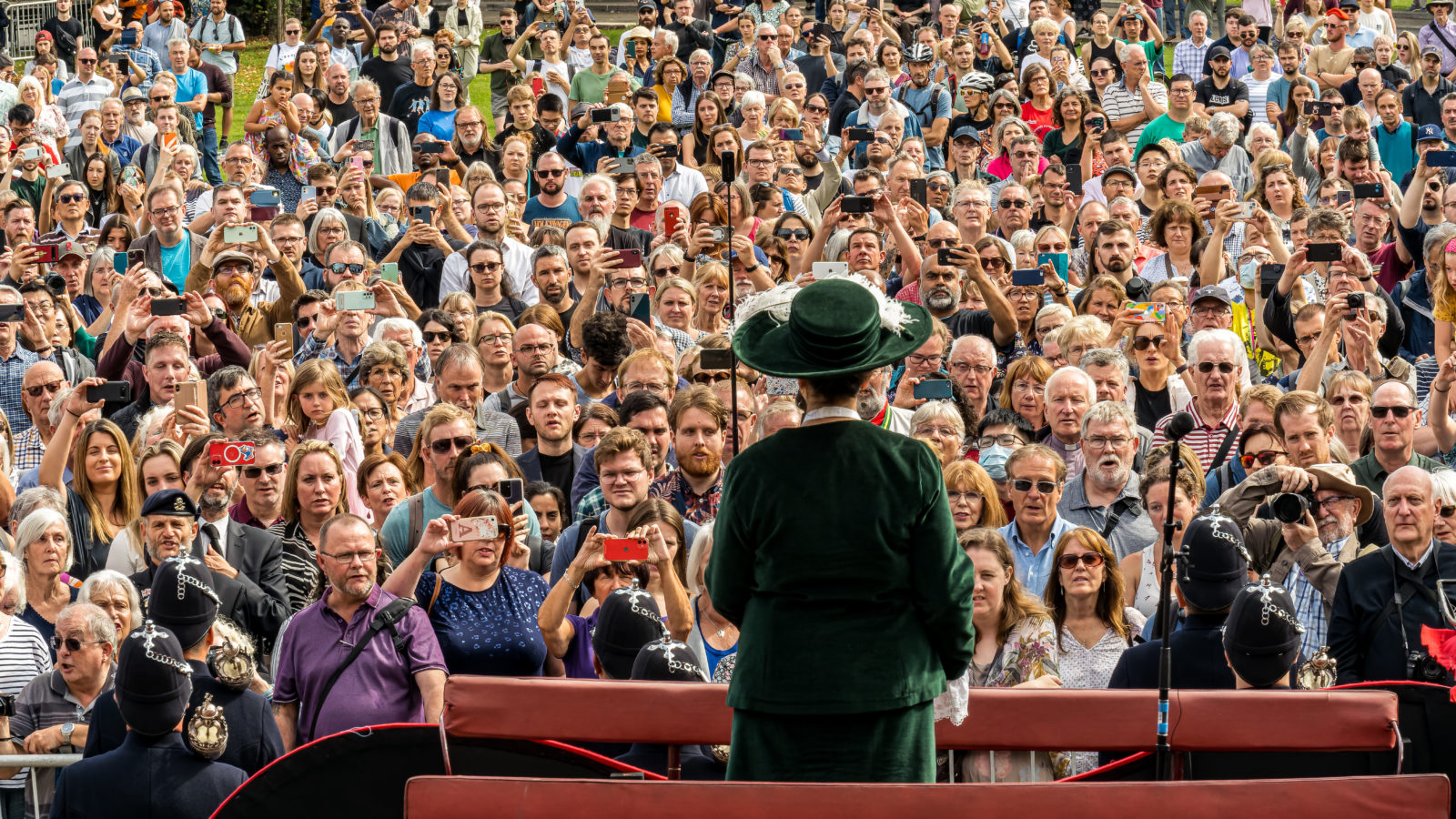 The lord-lieutenant, bishop, lord mayor and high sheriff then spoke from the sparkly decorated proclamation carriage.