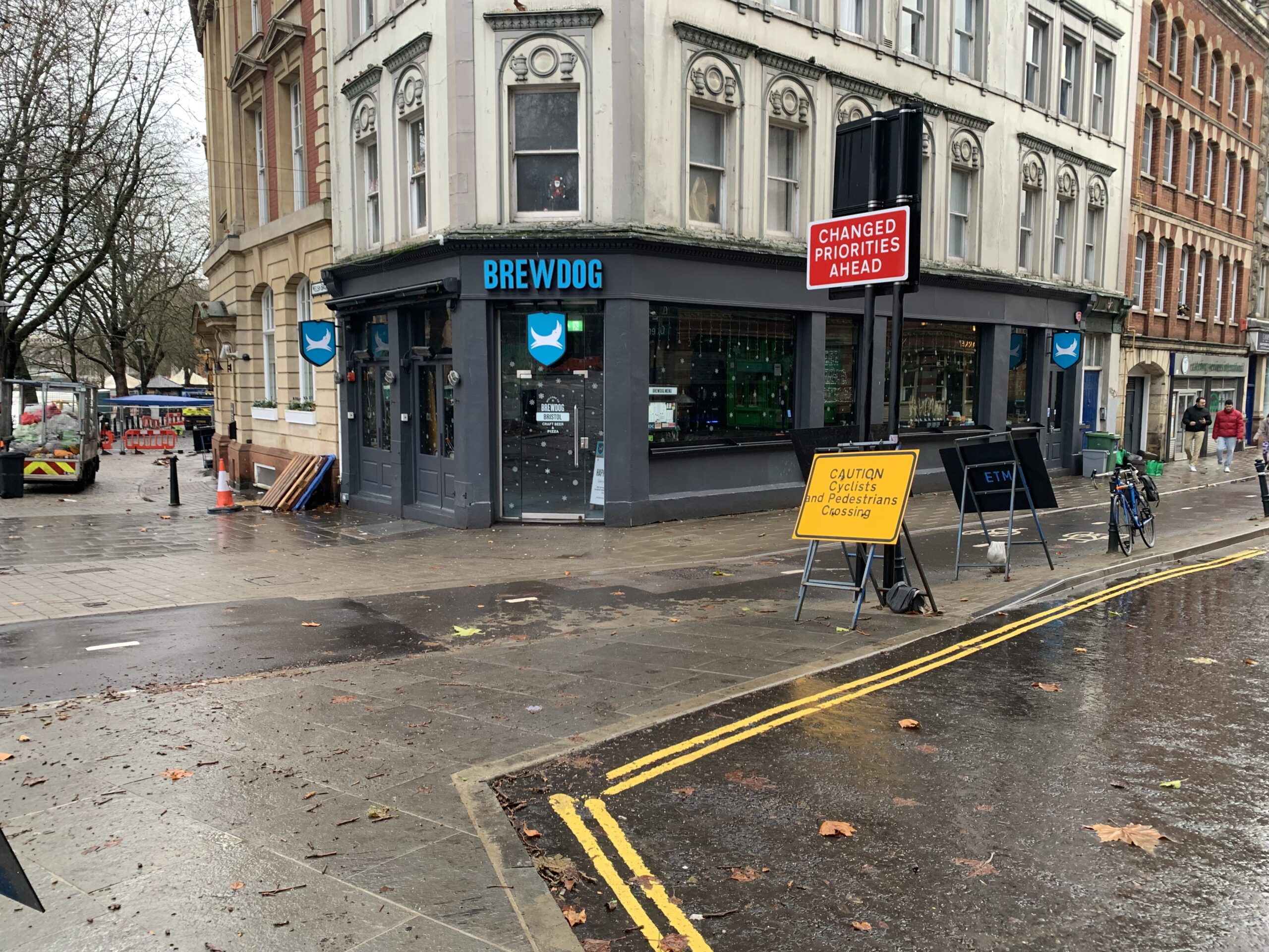 The digital advertising screen would form part of a floating bus stop on Baldwin Street next to Brewdog – photo: Mia Vines Booth