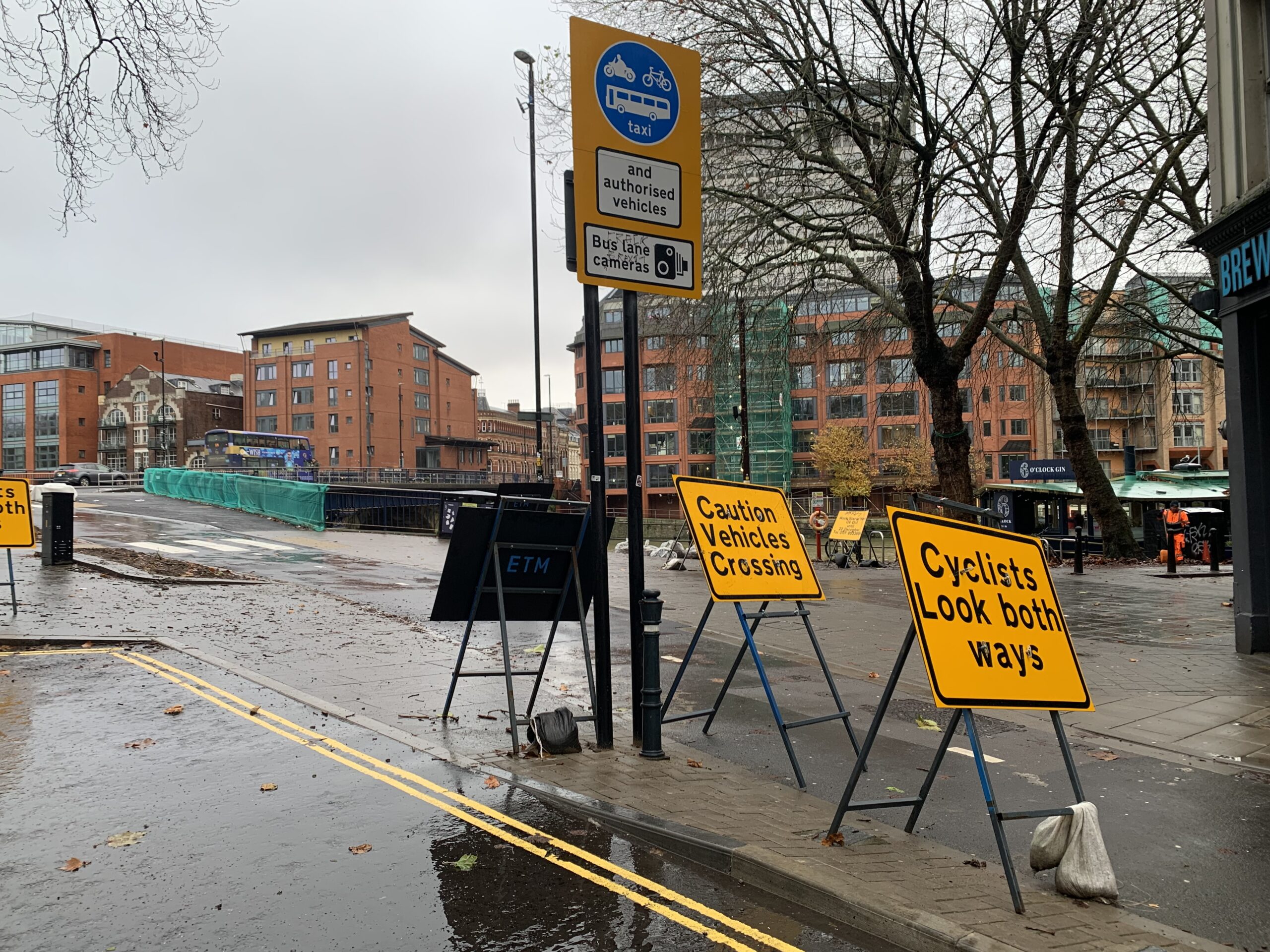 If approved, the ad screen would be located next to a £1.4m project that has seen new segregated cycle lanes connect Baldwin Street to Bristol Bridge – photo: Mia Vines Booth