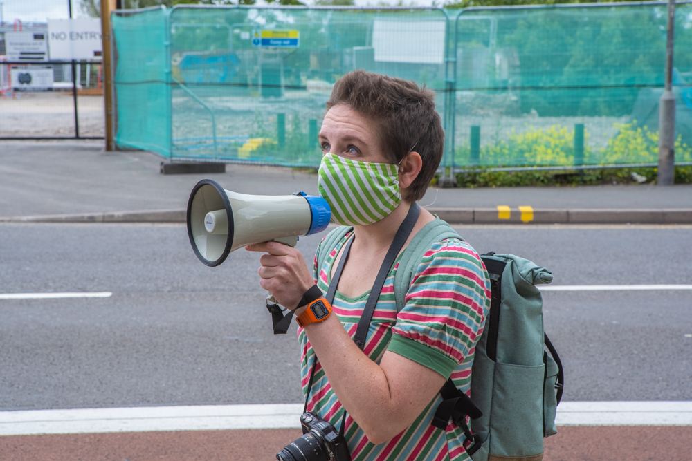 Carla Denyer, a Green councillor for Clifton Down and member of AdBlock Bristol, attended the protest