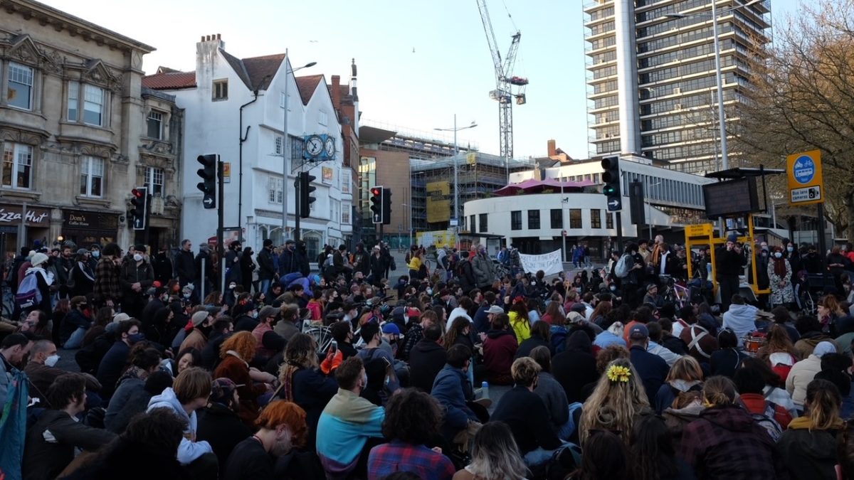 It was an adrenalin-filled end to a stop-start day of protest which began on College Green on Saturday afternoon with the fourth ‘kill the bill’ march attended by an estimated 1,500 people, encompassed a street party on the Centre and saw the M32 brought to a standstill.