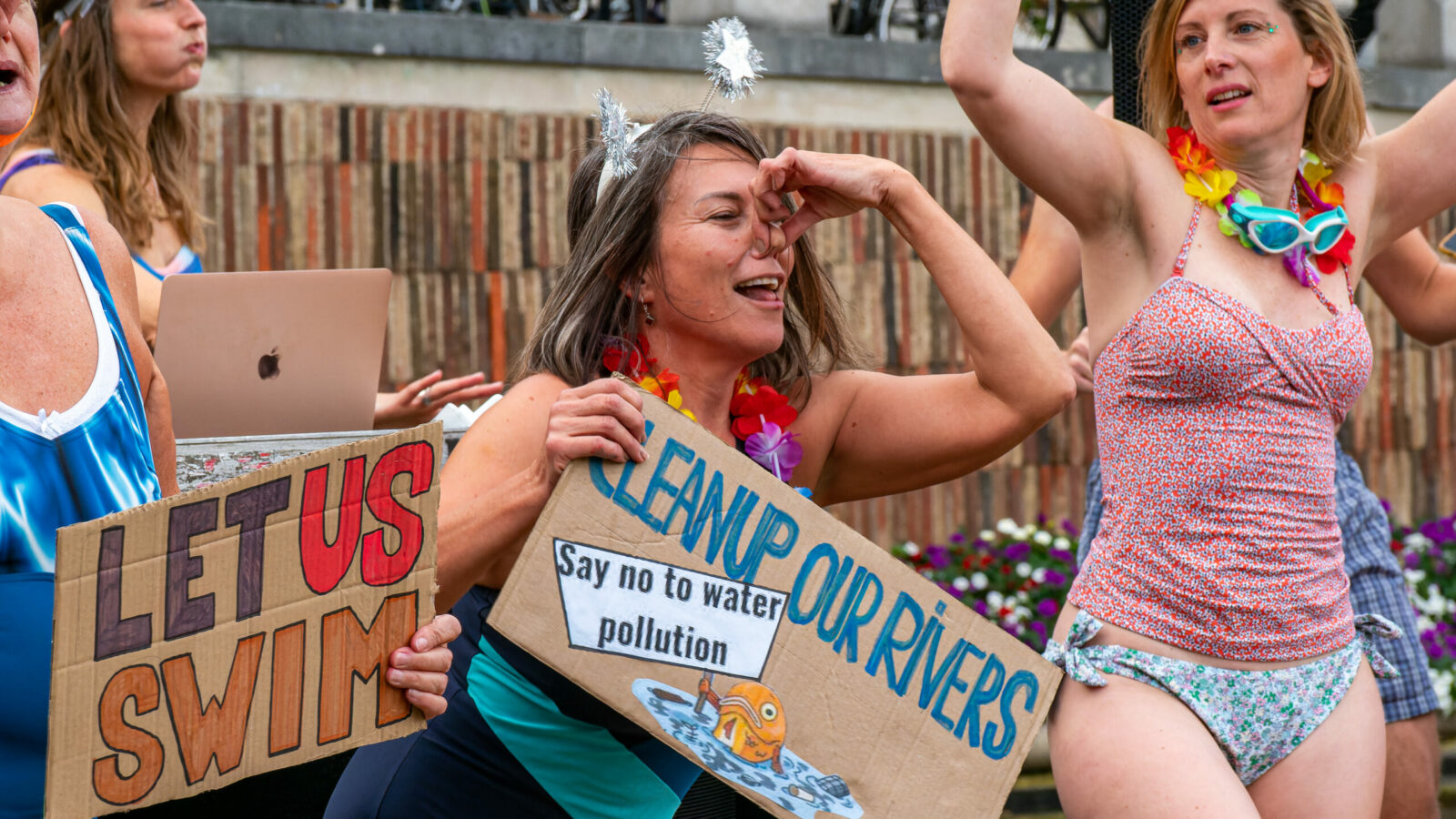 Swimmers gathered for a ‘raving for bathing’ demonstration, to demand councillors address the issue of sewage pollution in the River Avon.