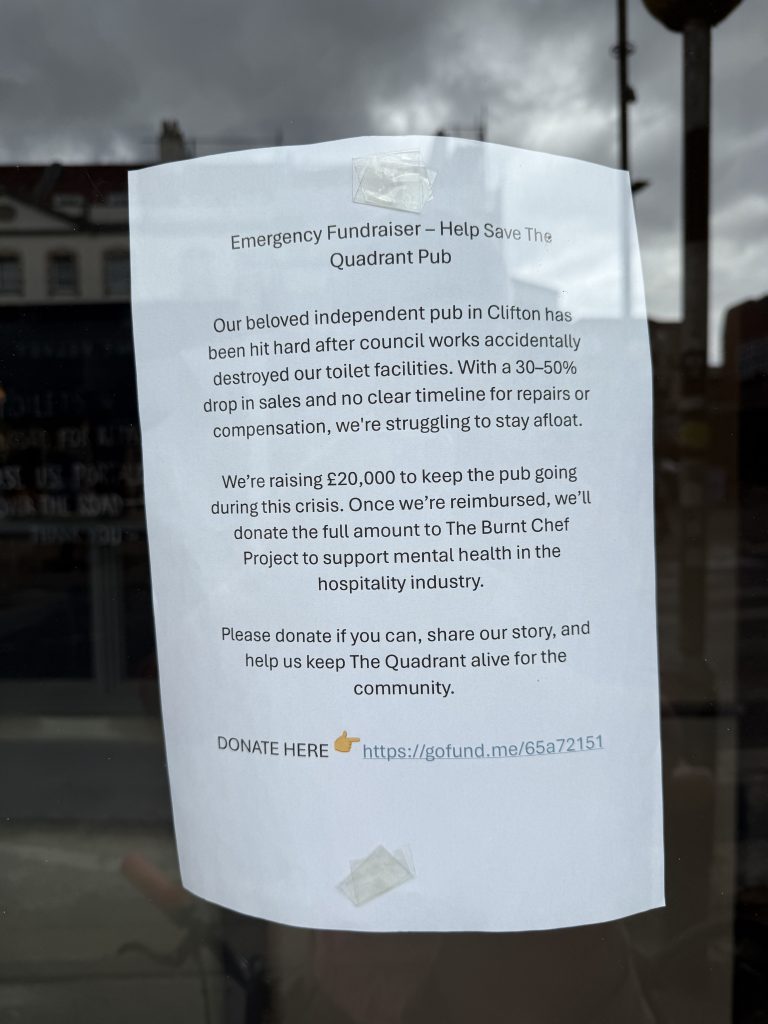 A pub in Clifton claims they have seen a drastic fall in business after council contractors accidentally drilled into their underground toilets, forcing patrons to use portable loos.