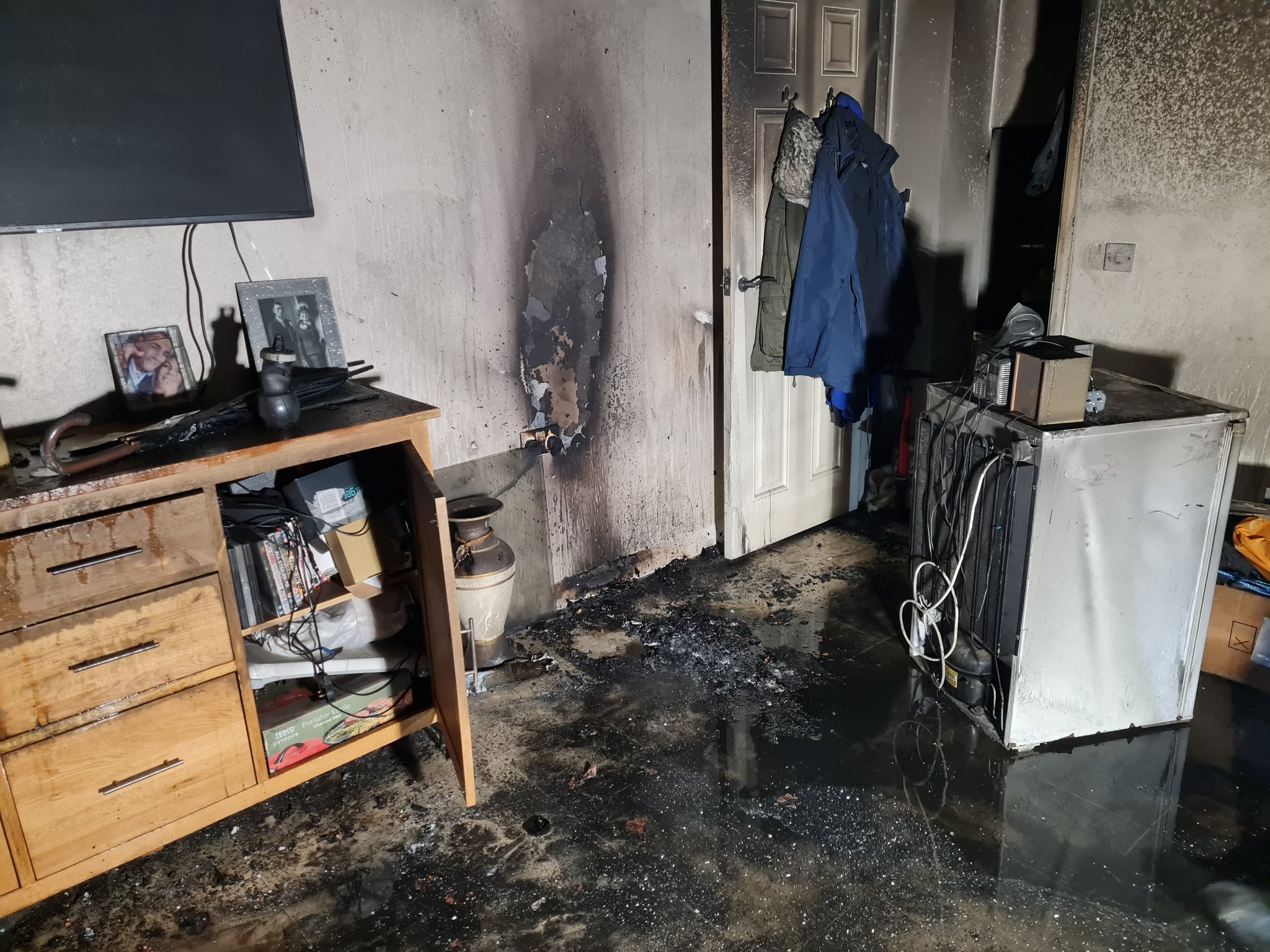 The service said an electric scooter had caught fire and caused extensive fire and smoke damage to the None of the occupants were hurt, they added.