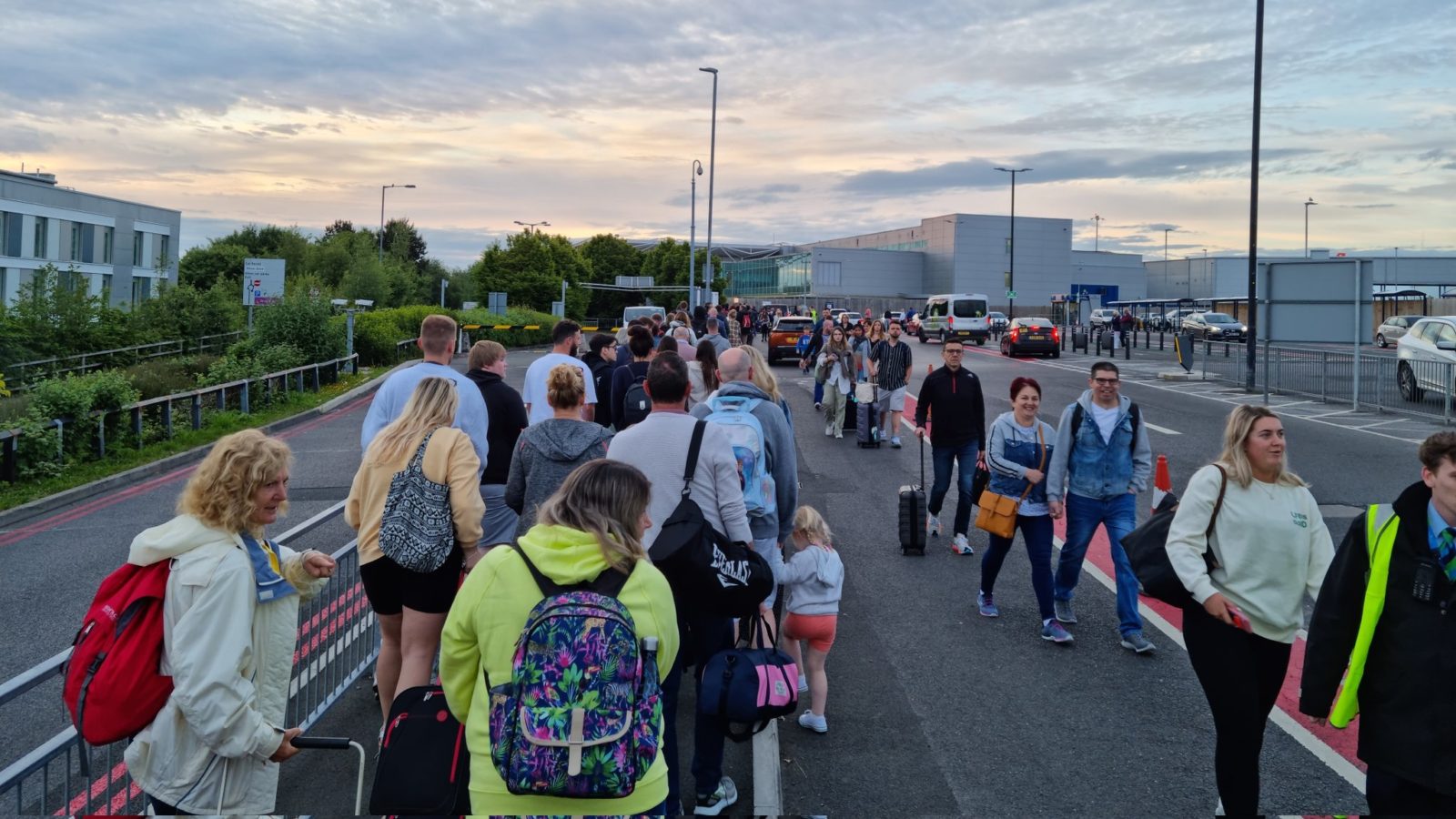 Paul Trueman Tweeted: “It’s five in the morning and this is the queue for the departure gates. That building in the distance is the airport.”