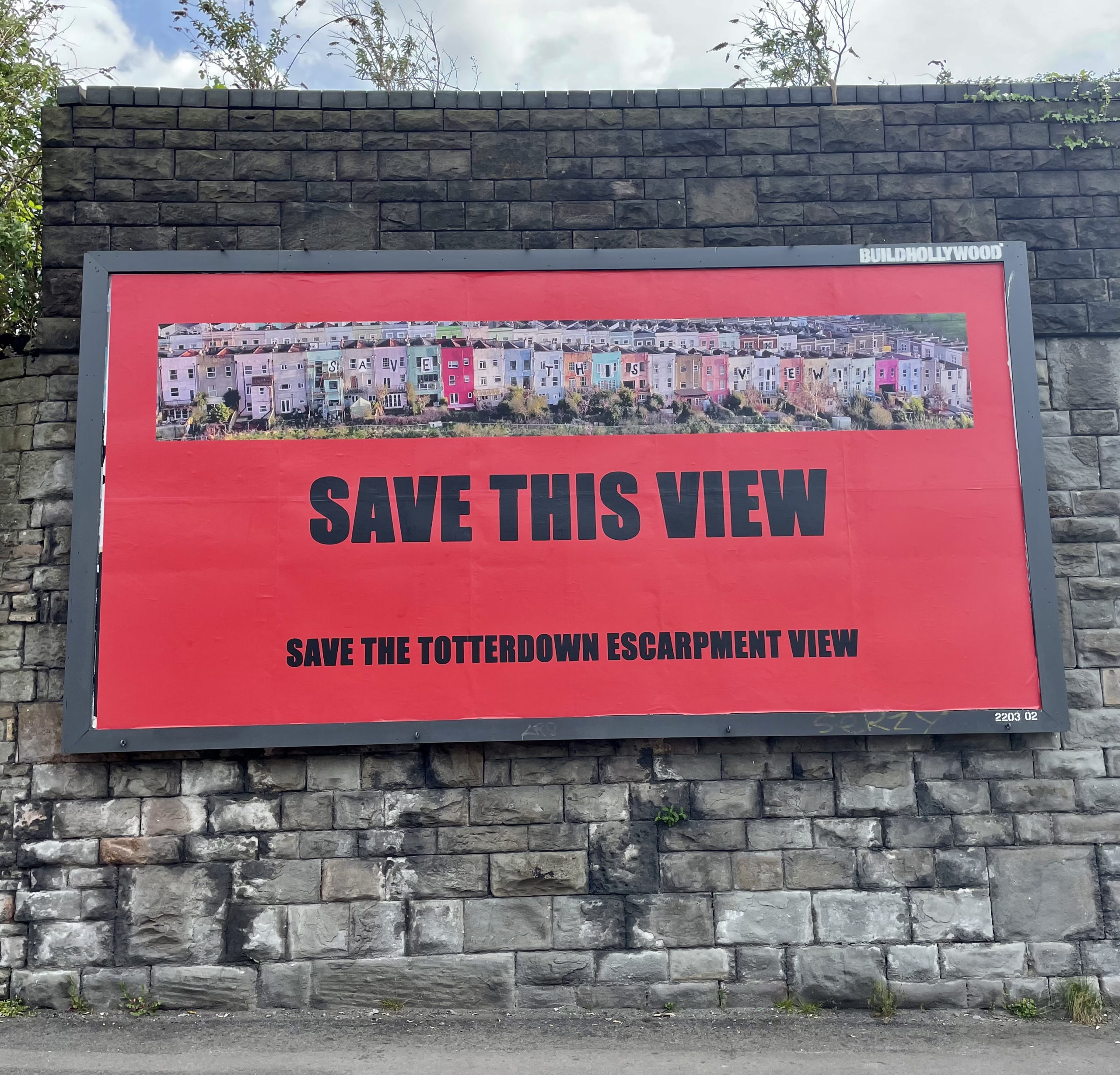 ‘Save this view’ is the succinct message written on a new ruby-red billboard in south Bristol.