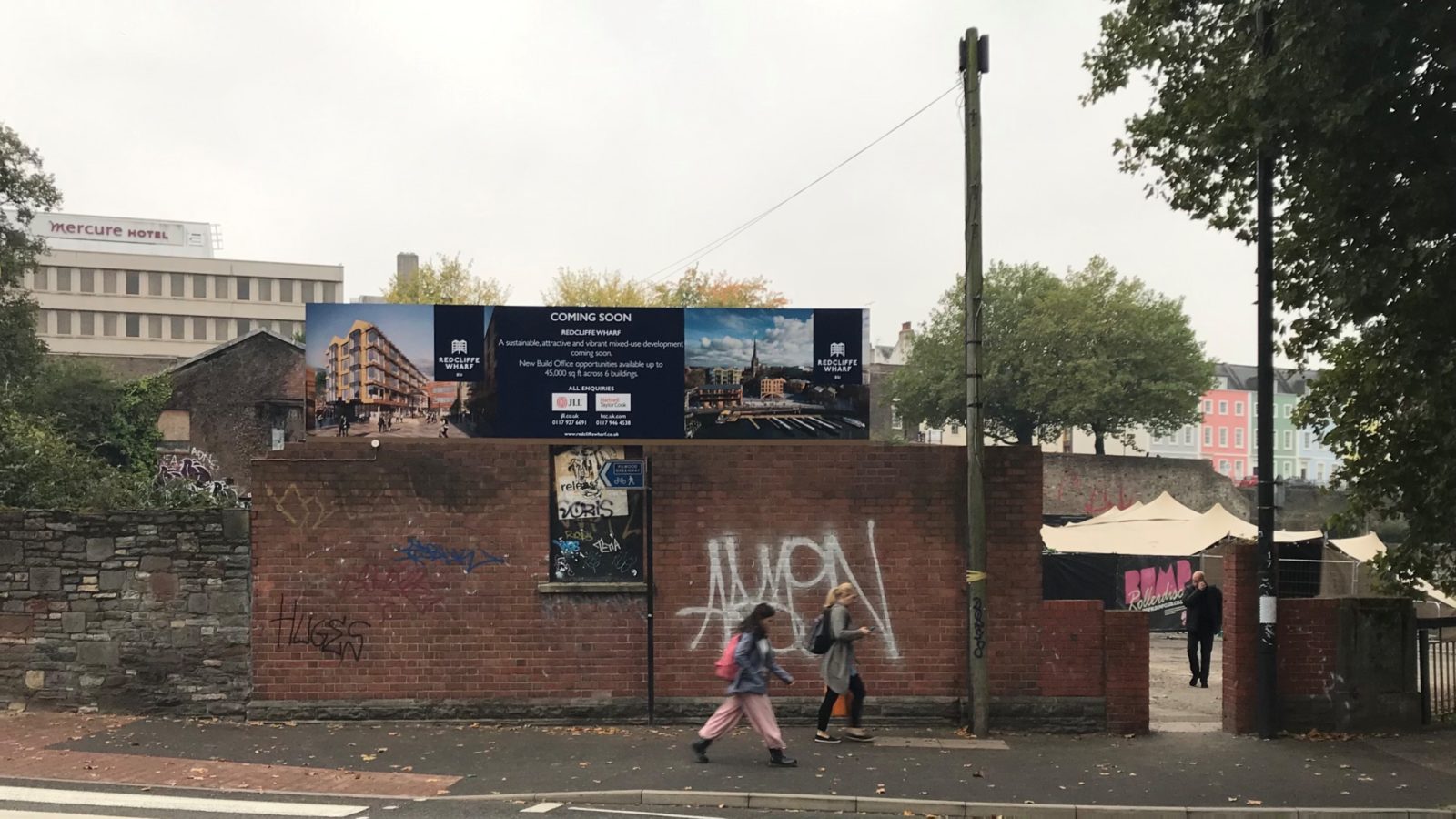 Signs have been put up on Redcliffe Way saying that Redcliffe Wharf is now “coming soon”.