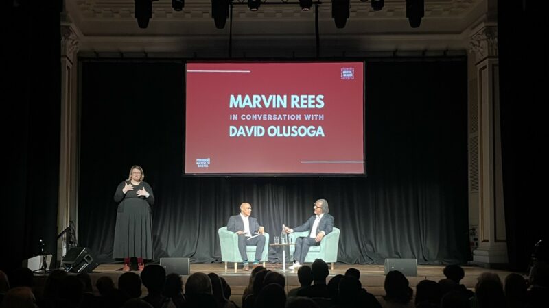 Marvin Rees spoke to David Olusoga after his final speech as mayor – photo: Martin Booth
