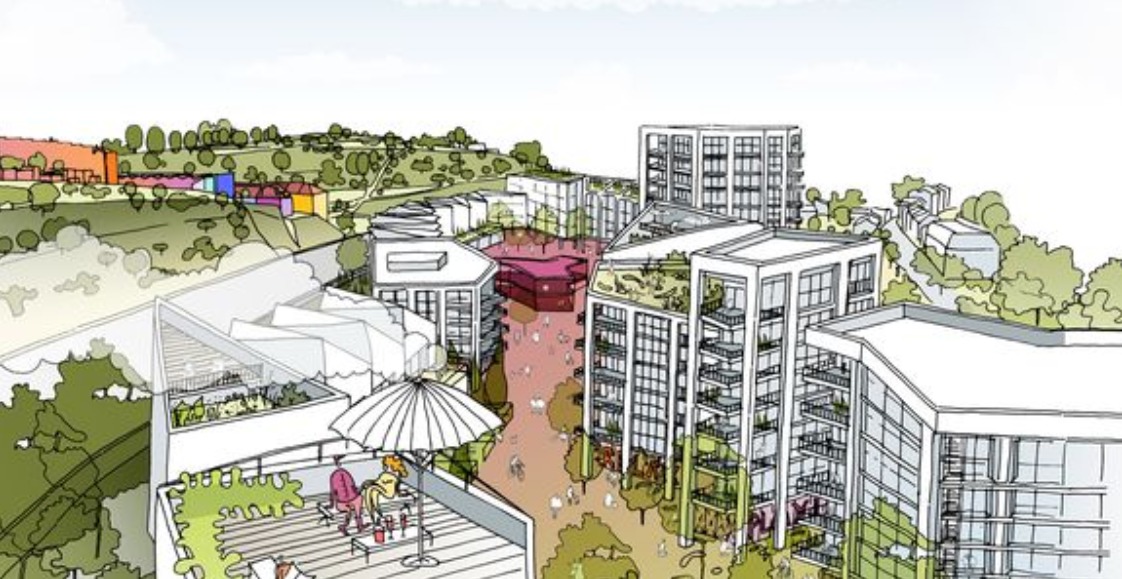 An artist’s impression of the 900-apartment proposed development at Mead Street, in front of Totterdown – image: Marina Samvelyan