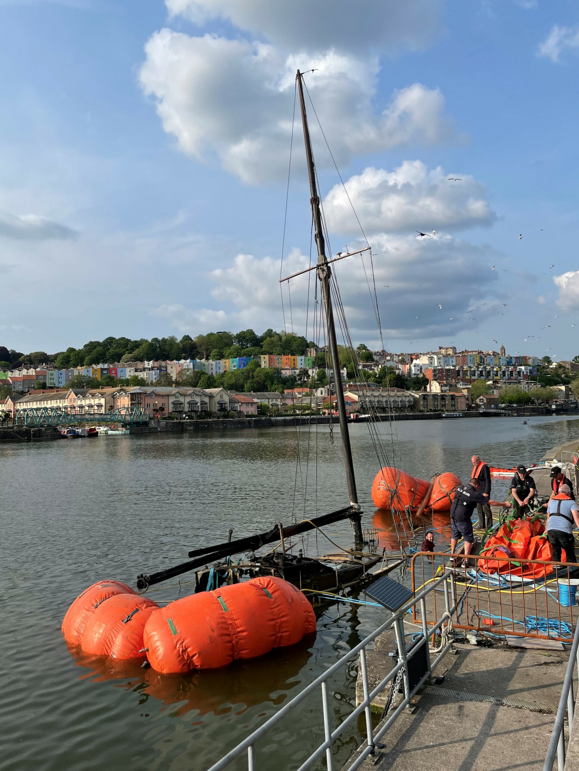 Work has now started to retrieve the boat from the water, with several large orange inflatable balloons attached to the hull.