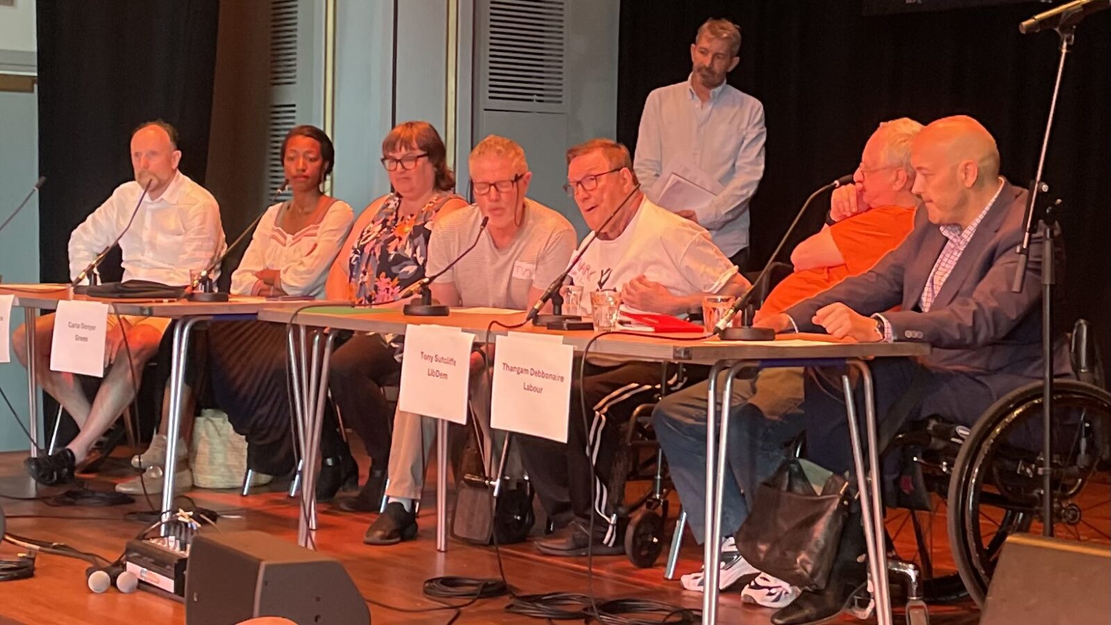 Robert Clarke (pictured above, far left) was speaking at a deaf and disabled people hustings organised by WECIL and Bristol Reclaiming Independent Living.