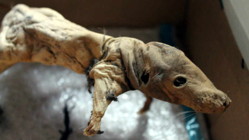 “At first I thought it was just a bit of old carpet, but then I saw the little paws and it made me jump. I couldn’t believe how well preserved it was.”
