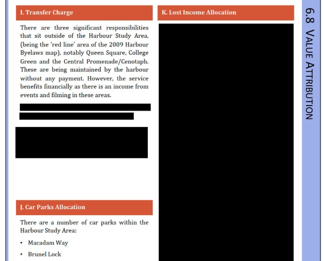 One of the most heavily redacted sections of the report is the ‘lost income allocation’. This appears to be a list of concessions but none are visible.