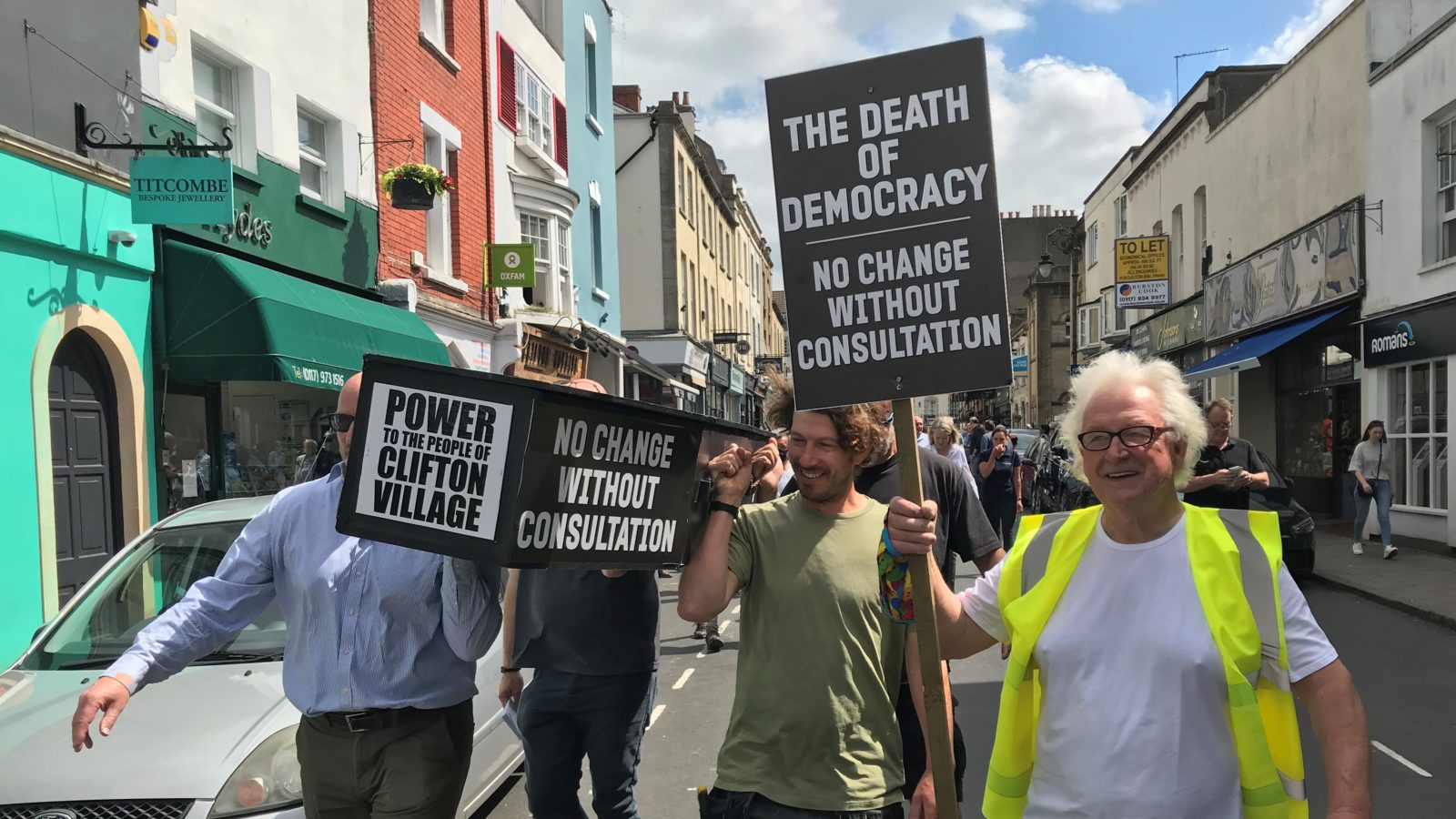 In front of an agitated crowd, Clifton councillor Paula O’Rourke defended the consultation plans, saying that more than 900 people have already responded and that she was due to meet on Tuesday evening with traders to look more closely at the city council’s plans.