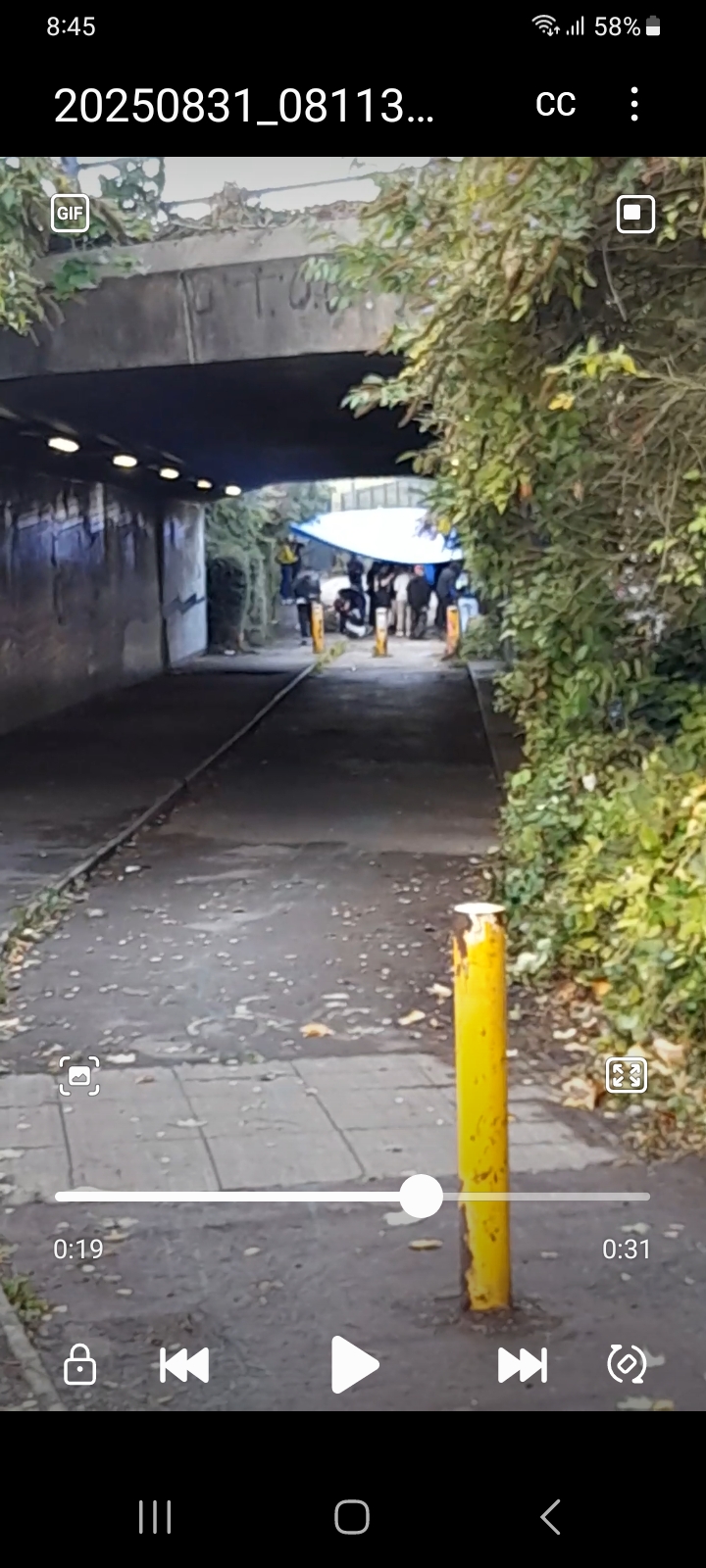 A screenshot of a video shared by an anonymous participant on the Facebook group shows the scene of the rave, at one end of the underpass near Days Lane