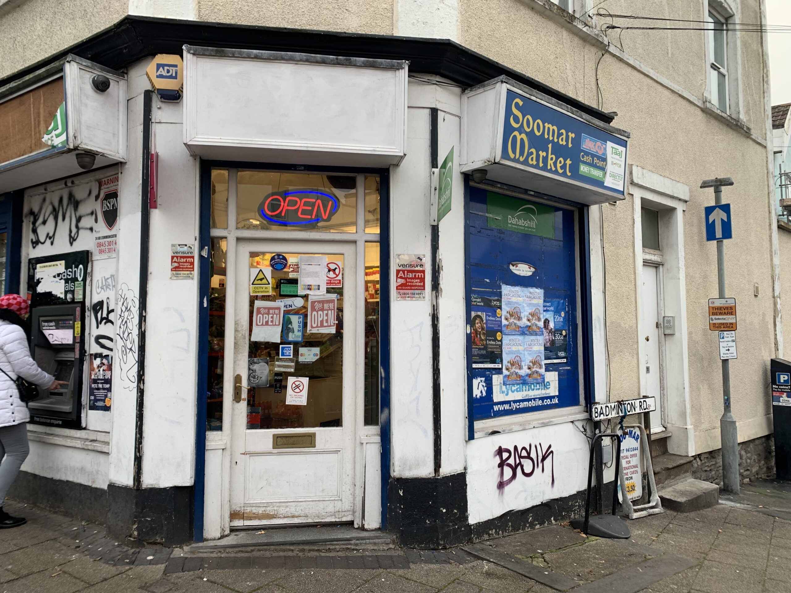 Soomar Mini Market sits on the junction between Ashley Hill and Ashley Road