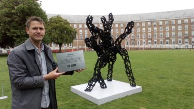 In 2018, the artist installed Inhale – a sculpture depicting a diesel particle – on College Green to raise awareness of the problem of air pollution in the city.
