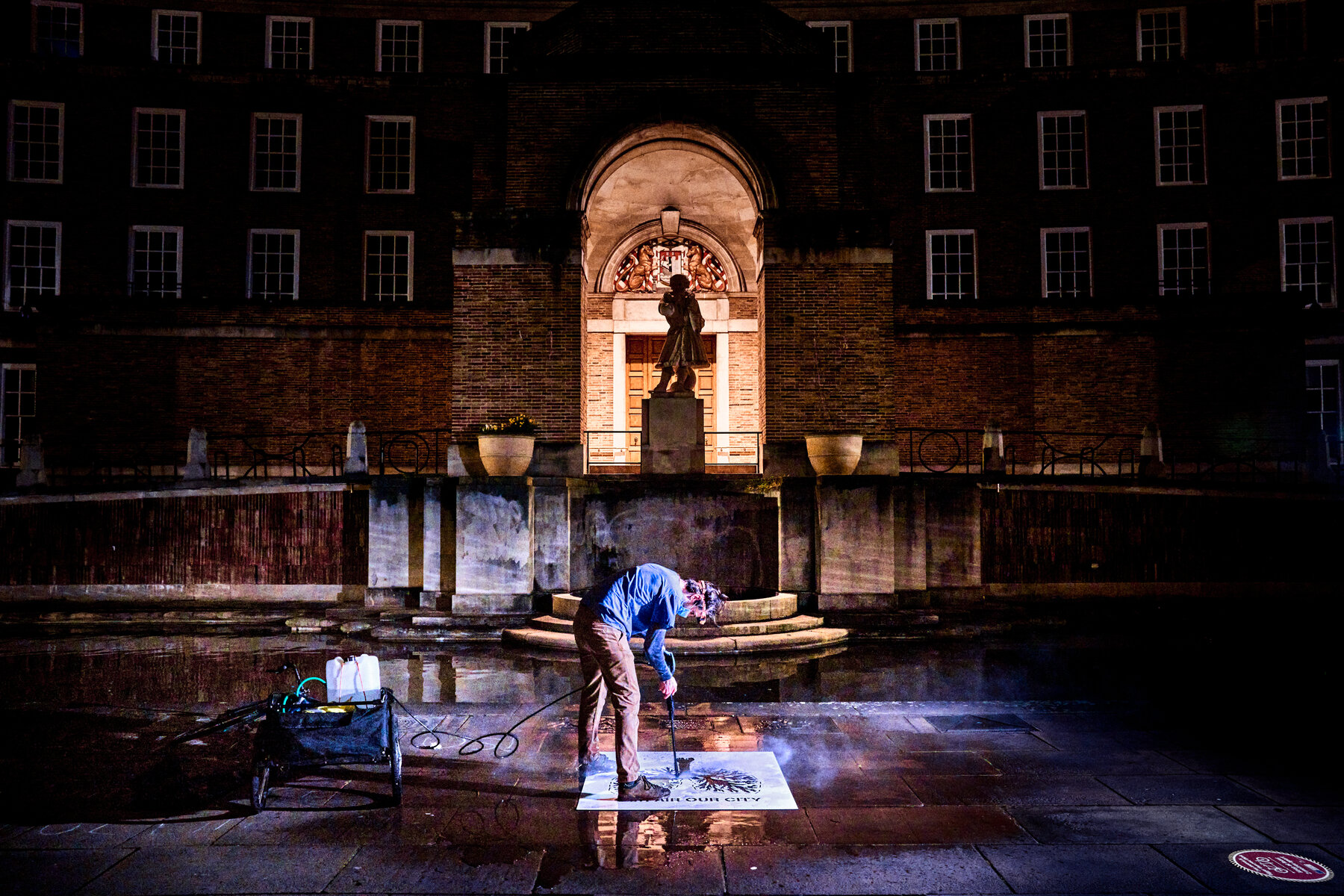 Jerram, who is the brains behind Play Me I’m Yours, Museum of the Moon and the recent Oxford-AstraZeneca vaccine sculpture, explains: “Most graffiti uses toxic spray painting materials, but the clean air campaigners are cleaning off pollution to make this imagery. They’re cleaning up the city and making art from the absence of dirt and pollution.”