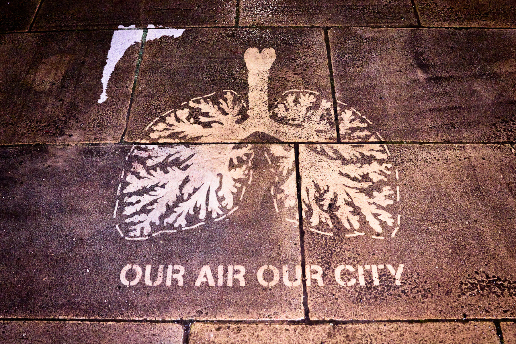 Working under the cover of darkness, campaigners created a series of stencilled images on walls and pavements in the city over the weekend to highlight the health crisis caused by air pollution.
