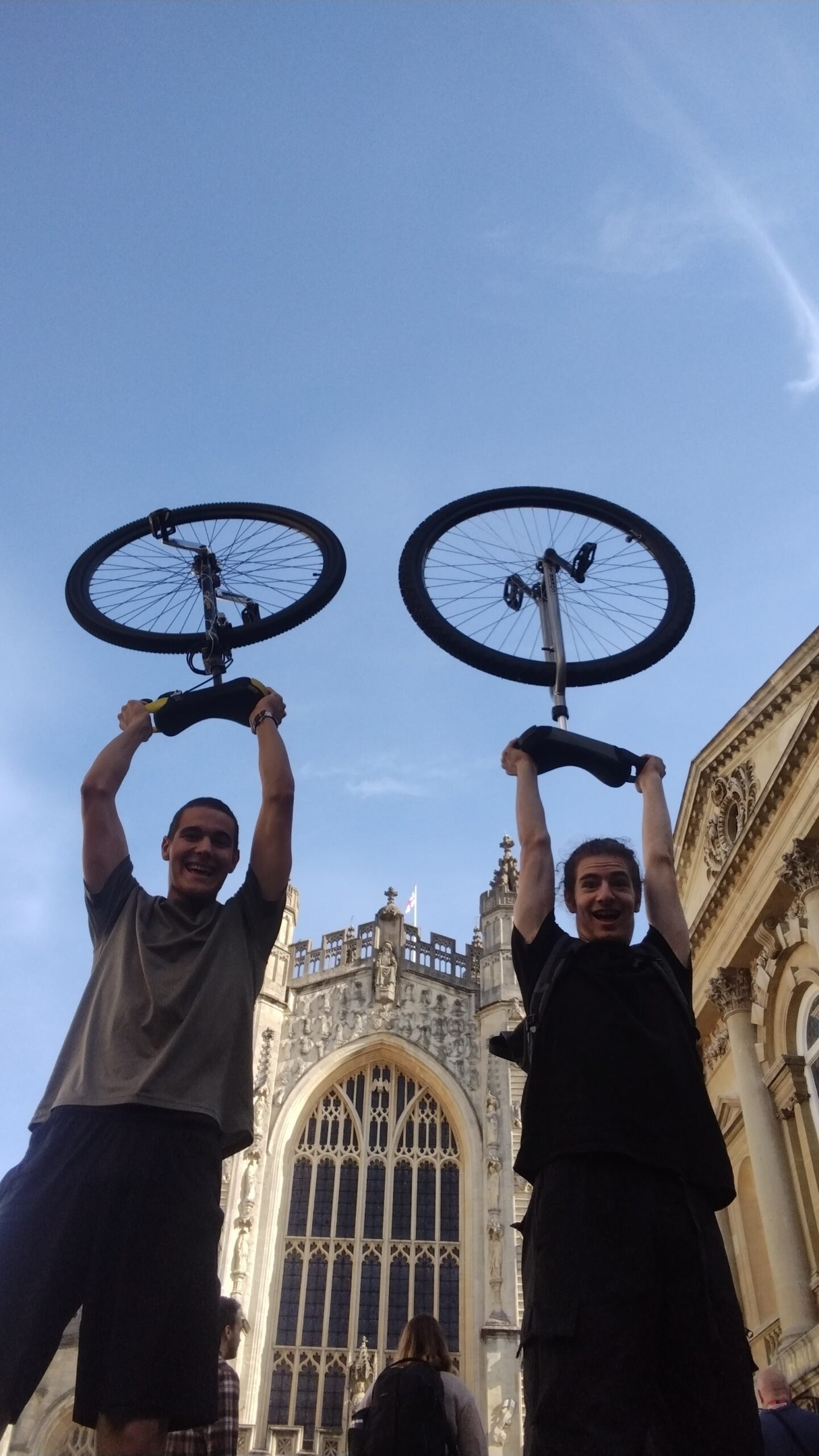 “I’m putting all the weight pretty much on my unicycle, whereas Bertie is putting it all in the bag on his back! He’s just built differently.”
