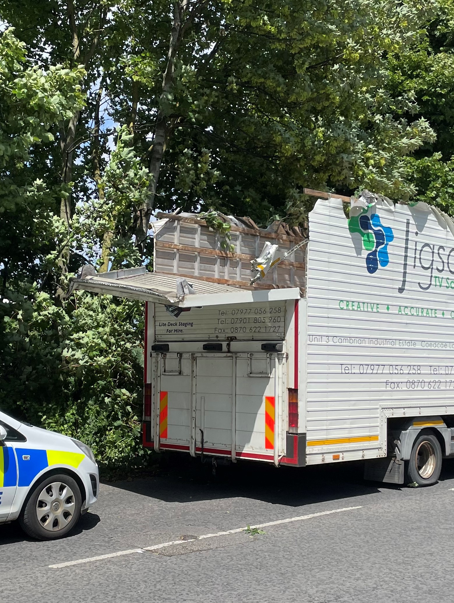 The entire roof of the lorry had been ripped off after it hit the bridge – photo: Martin Booth