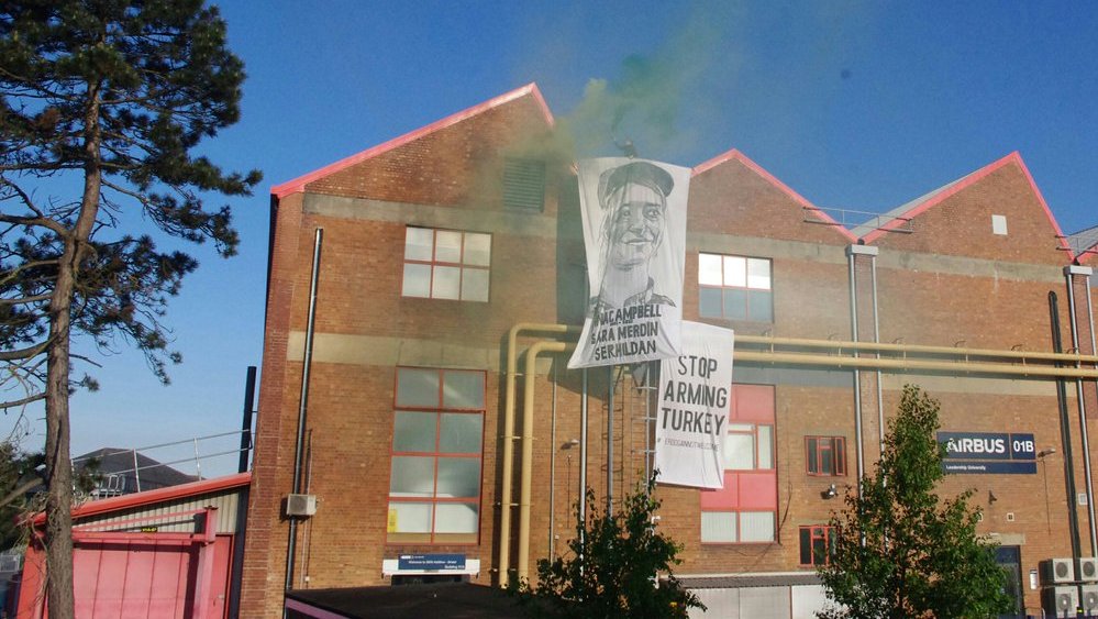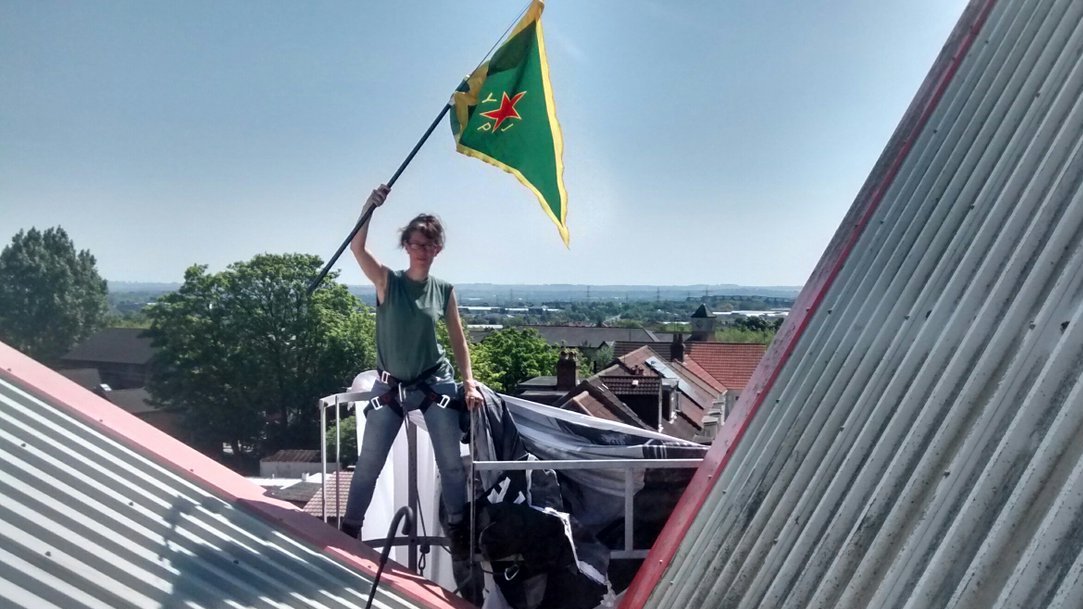 One of the rooftop occupiers, Liz, said: “The Bristol arms industry wants to pretend that the people it kills don’t have stories. So we have brought them the face of our friend, and the heroes who inspired her.”