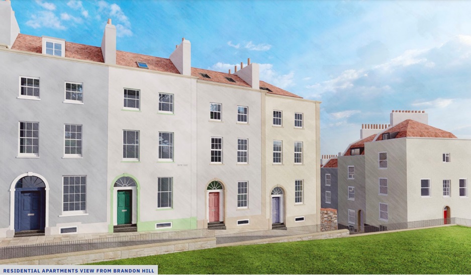 The proposed design of the new buildings on Queen’s Parade as seen from Brandon Hill – image: Angus Meak Architects