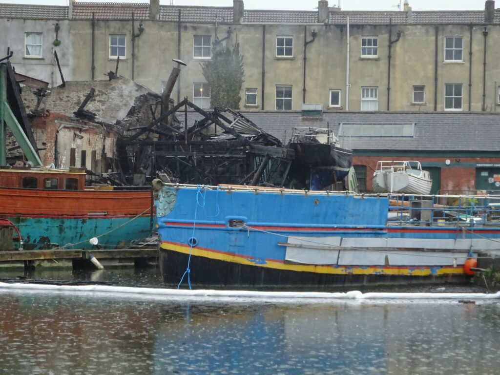 Boatbuilding sheds were almost completely destroyed in the fire on Saturday morning – photo: Bristol24/7