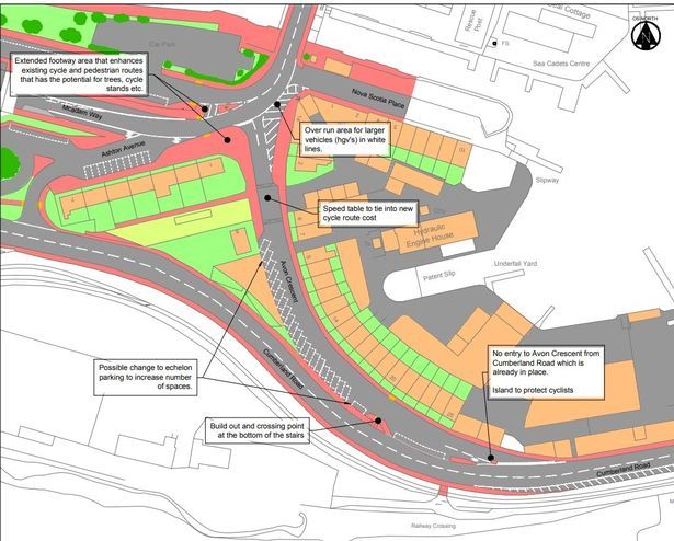 The new plan would continue to stop traffic entering Avon Crescent from Cumberland Road and would see an island installed at the junction “to protect cyclists.”