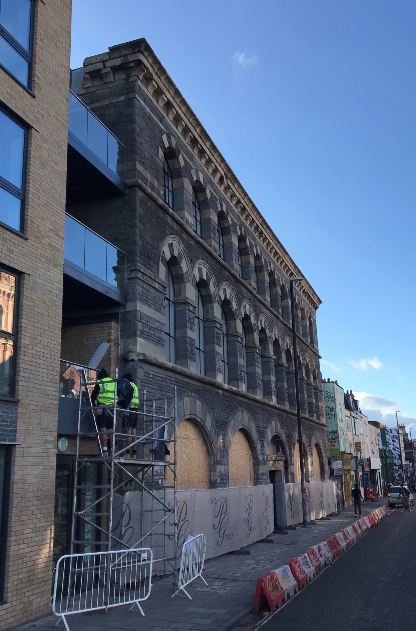 Designed in the Bristol Byzantine style and formerly on the English Heritage Buildings at Risk Register, the building on Stokes Croft now forms part of a new residential development.