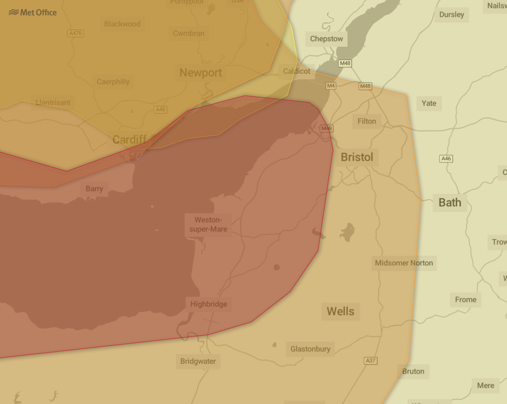 The red weather warning had been issued earlier on Friday afternoon across parts of Bristol and Somerset.
