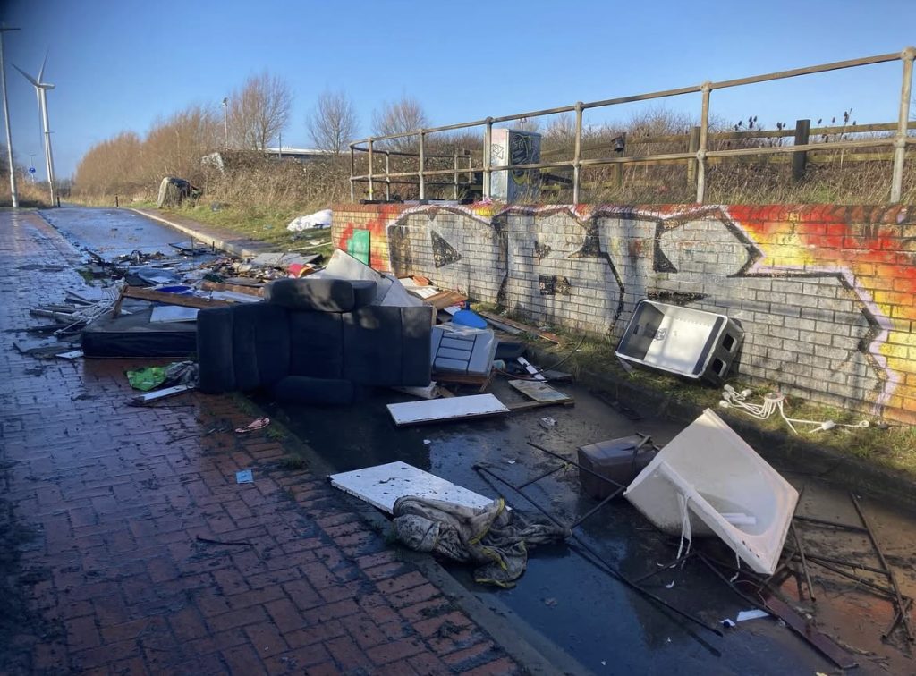 A huge pile of rubbish has been illegally dumped on a cycle path.
