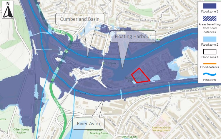 The updated flood risk assessment for the site written for Goram Homes and Hill by Almondsbury-based environmental consultants Hydrock says that the planning application submitted for the Baltic Wharf site “is concluded to meet the flood risk objectives of the NPPF (National Planning Policy Framework) and NPPG (National Planning Policy Guidance)”.